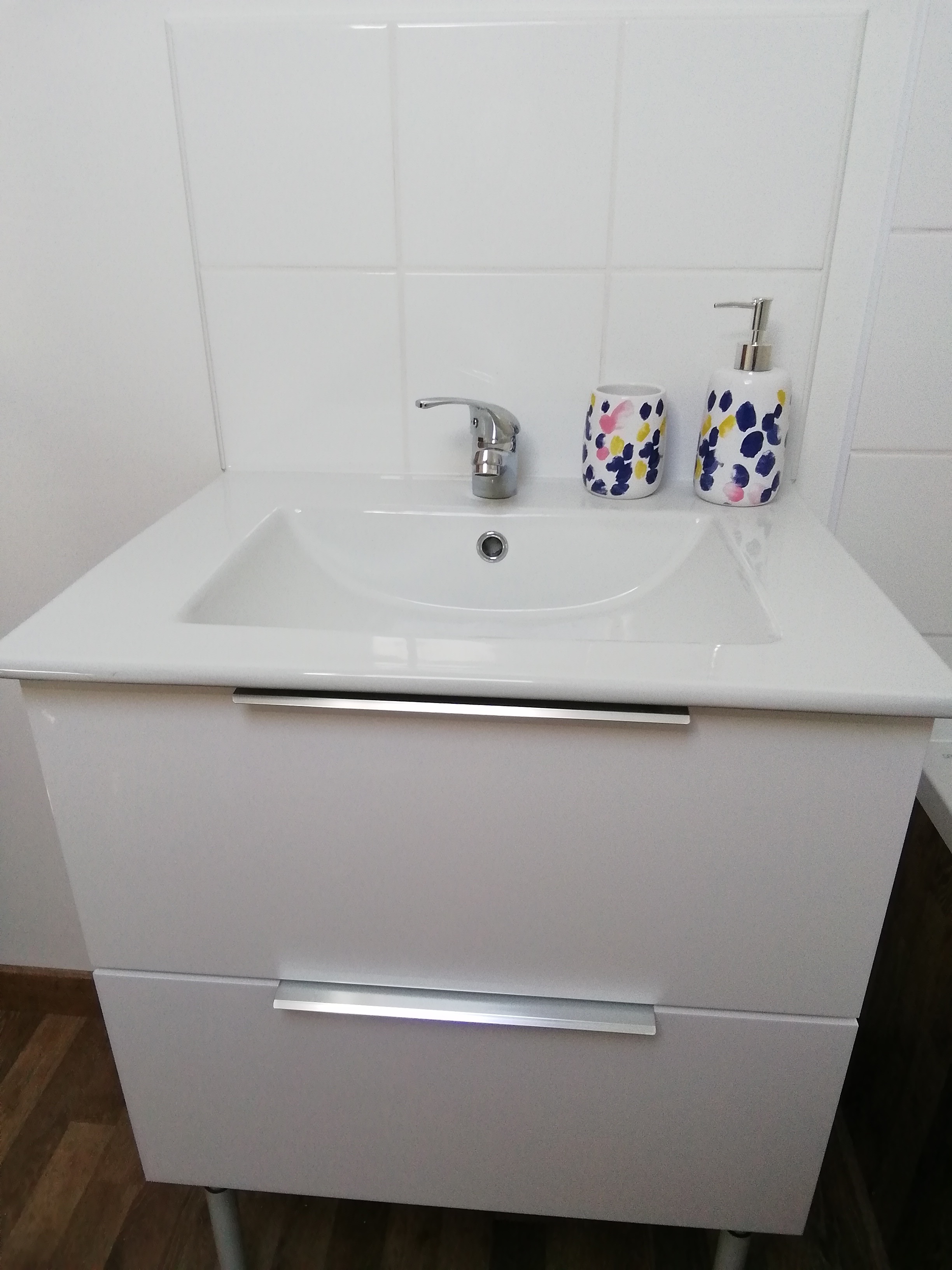 There is also a shared seperate laundry room with full size washing machine, iron and airer.